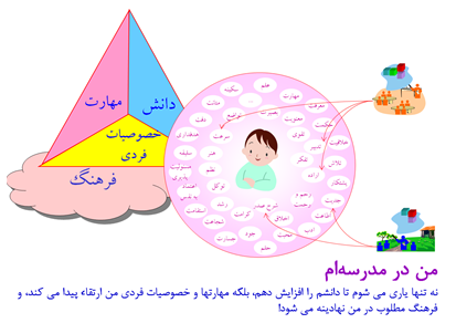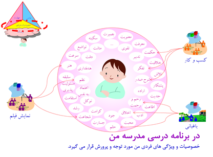 برنامه مشخص براي پرورش ابعاد مختلفمدرسه حكمت علاوه بر آنکه دانشآموز را ياري ميكند تا دانش خود را افزايش دهد، بستر ارتقاء مهارتهاي فردي او از يك سو، و خصوصيات فردي او را نيز در سوي ديگر، به صورت هدفمند و برنامهريزي شده، فراهم ميكند. علاوه بر آن شرايطي فراهم ميشود كه فرهنگ مطلوب در دانشآموز نهادينه شود؛ و رفتارهاي ناشي از هنجارها، عادتها و باورهاي دانشآموز، بصورت باثبات بهبود يابد! برنامه درسي و فعاليت آموزشي مدرسه حكمت، مشخصا سازوكارهاي مشخصي را براي اين ارتقاء فراهم ميآورد؛ و اين ارتقاء را دائما مورد سنجش و ارزشيابي قرار داده، و فعاليتهاي بعدي را مبتني بر اين ارزشيابي تنظيم ميكند. |